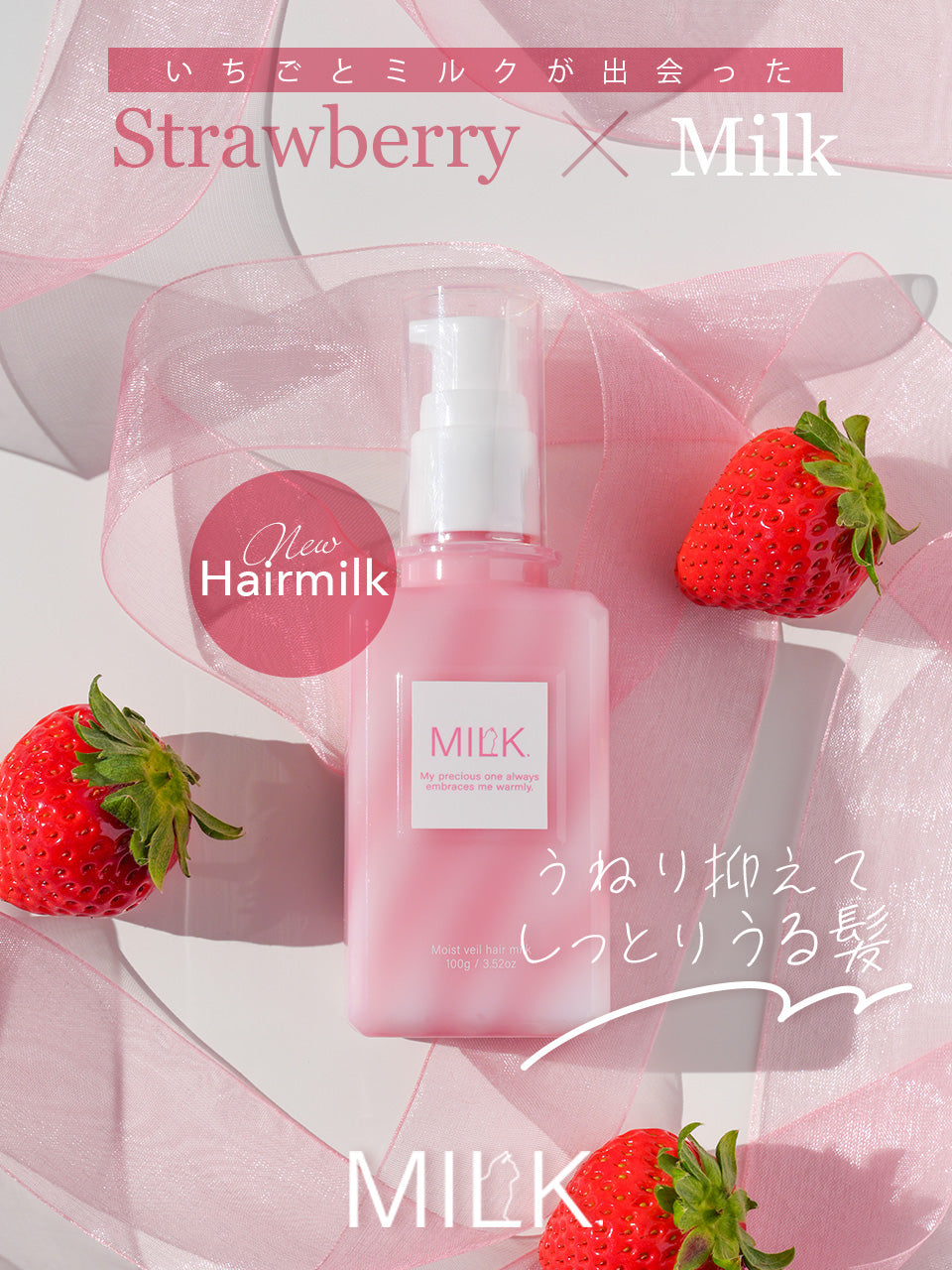 【MILK.】2月4日午後12時START、しっとり柔らかな髪へと導くヘアミルクからイチゴミルクの香りが数量限定発売