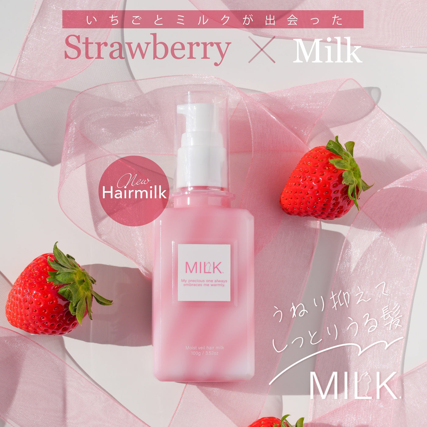 【MILK.】2月4日午後12時START、しっとり柔らかな髪へと導くヘアミルクからイチゴミルクの香りが数量限定発売