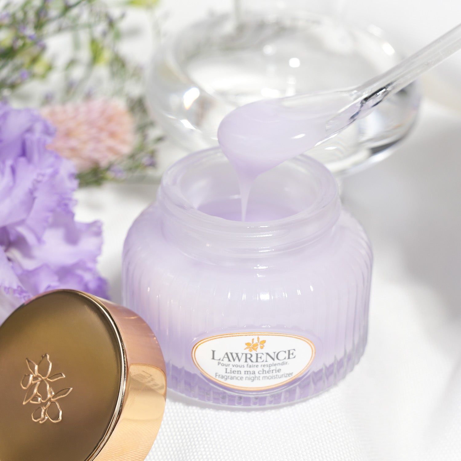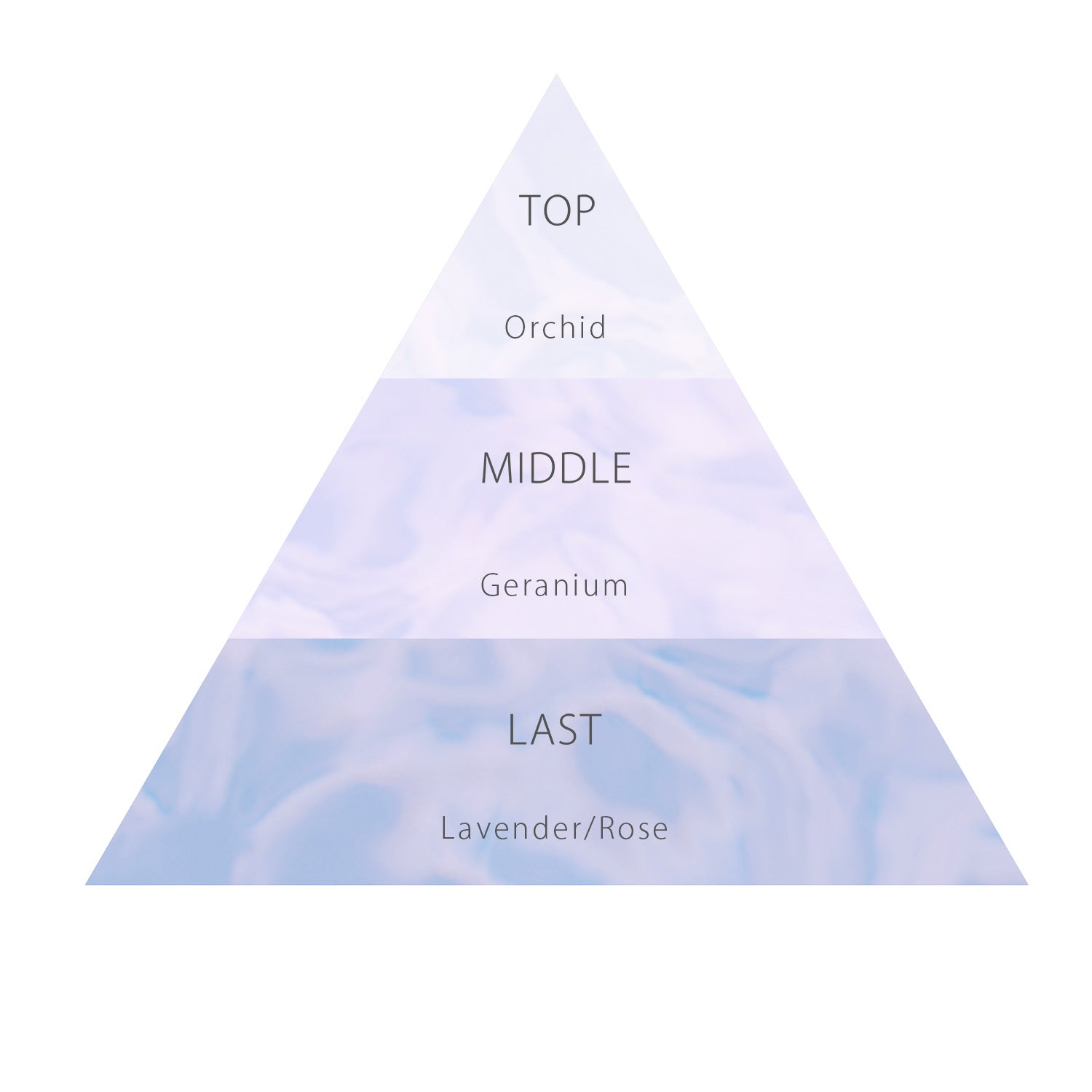 ミステリアスな薄紫の蘭の香りをベースに、ゼラニウム、ラベンダー、ローズがやわらかなベールとなって包みます。神秘的なフローラルノートに、フレッシュなハーバルが重なる奥深く魅力的な香りが、あなたを輝かせます。